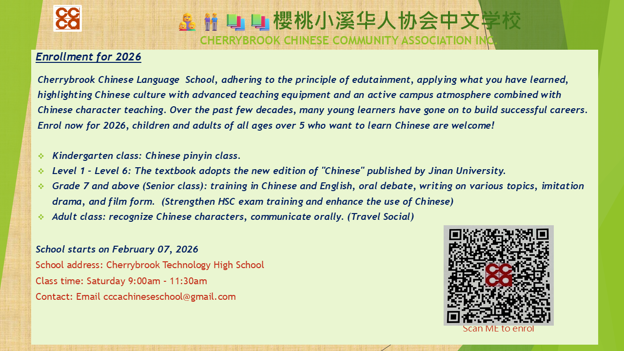 Cherrybrook Chinese Language School 2026 Enrolment Our Chinese Language School is now accepting enrolment for 2026.